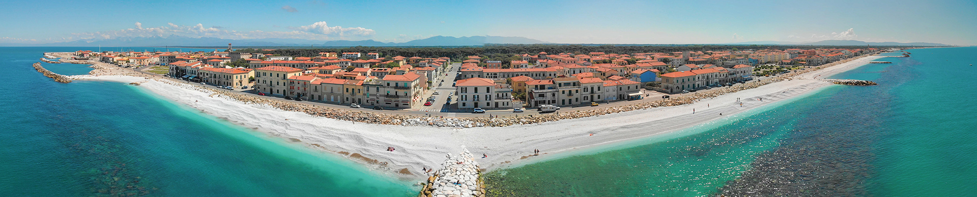 Al centro della costa tirrenica, tra lo splendido panorama delle Alpi Apuane a nord e le isole dell’Arcipelago Toscano a sud,